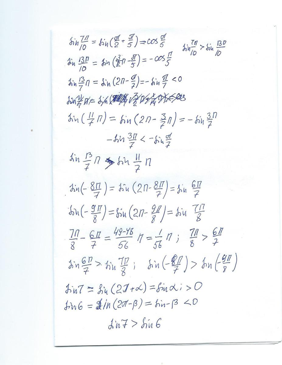 поскольку sin 7π/10 >0 то число со знаком + больше , чем то же число со знаком - , то есть