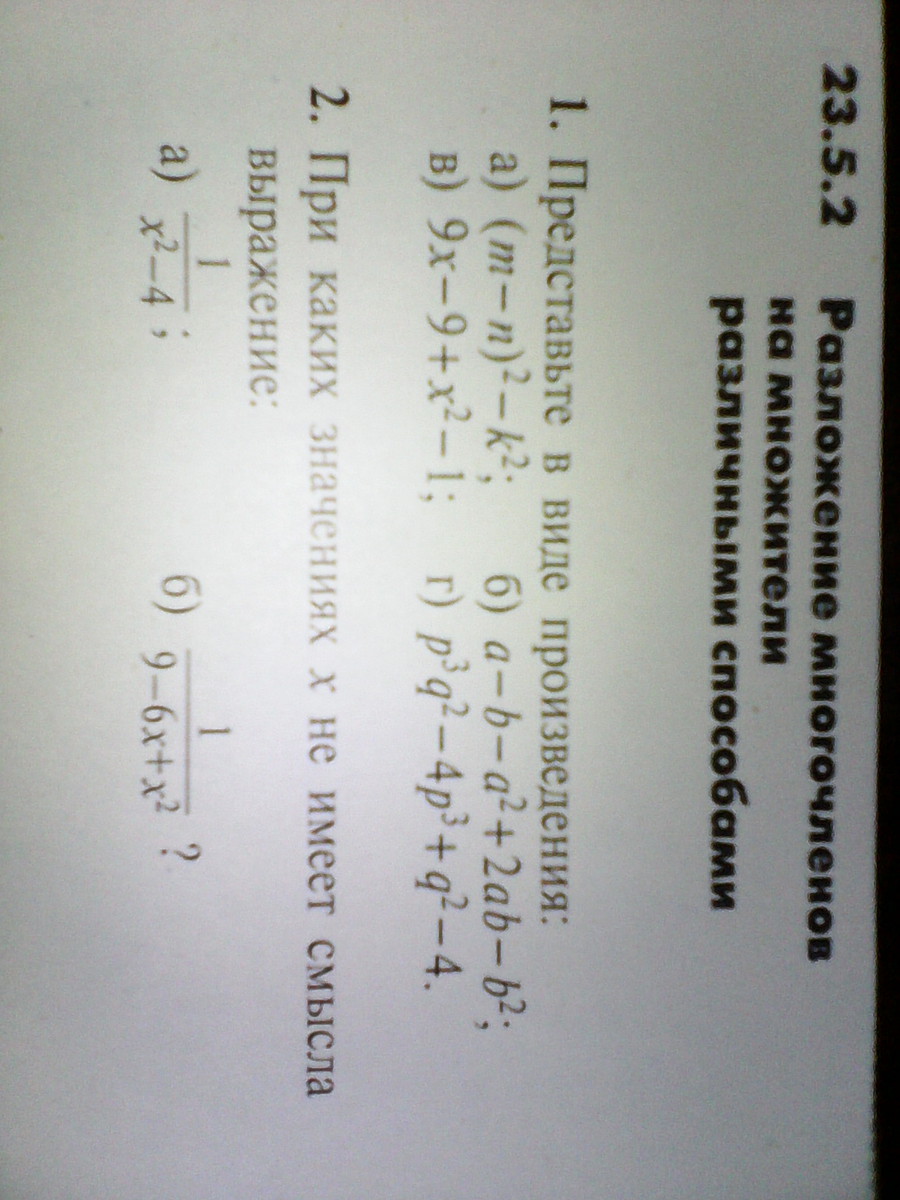 1) А) ( m-n)²- k²= (m-n-k)(n-n+k)