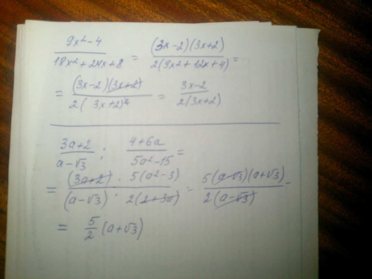 ... = ( (3а+2) / (а-√3) ) * ( 5*(а-√3)(а+√3) / (2(2+3а)) )=