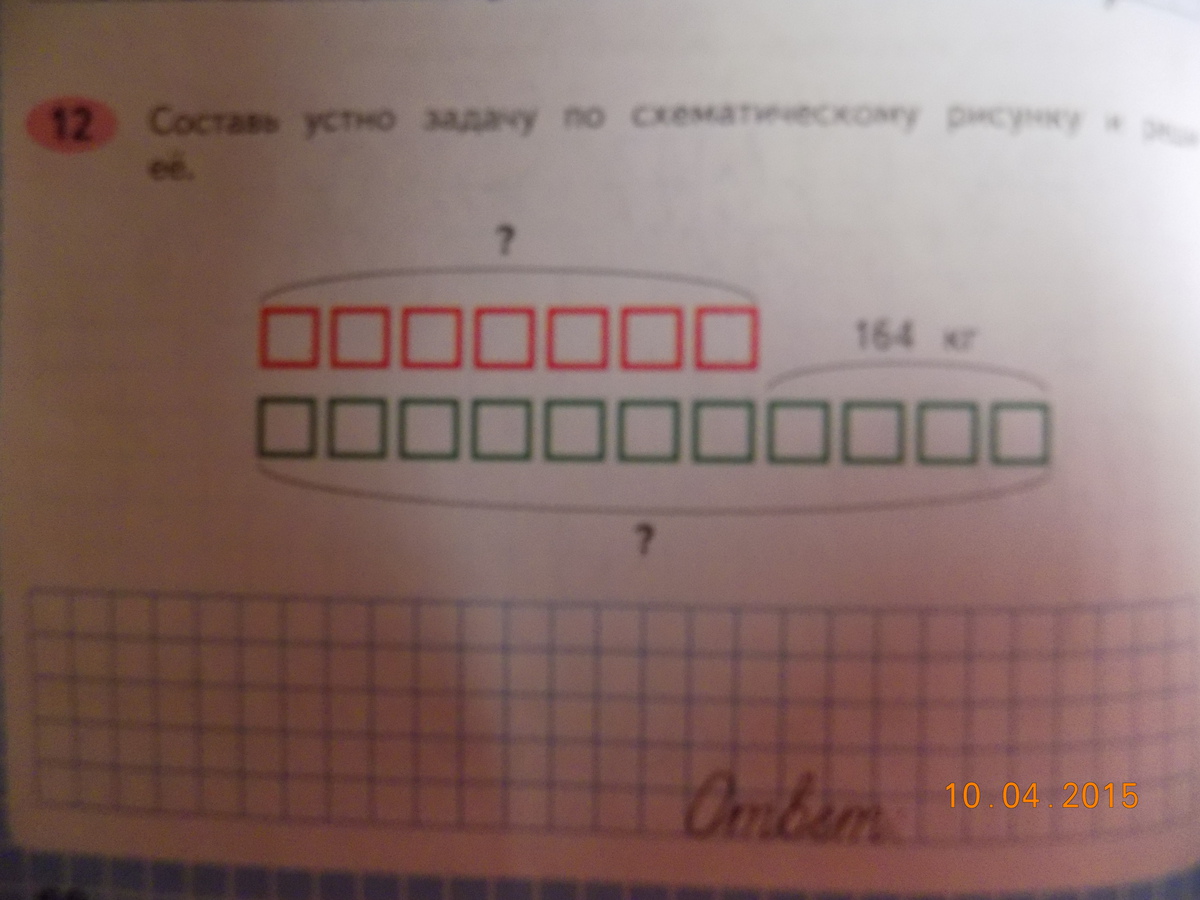 В магазин привезли в одинаковых ящиках апельсины и мандарины. Ящиков с апельсинами было 7 штук, а с мандаринами на 4 ящика больше. Найди сколько привезли отдельно мандаринов и апельсинов, если мандаринов было на 164кг больше.