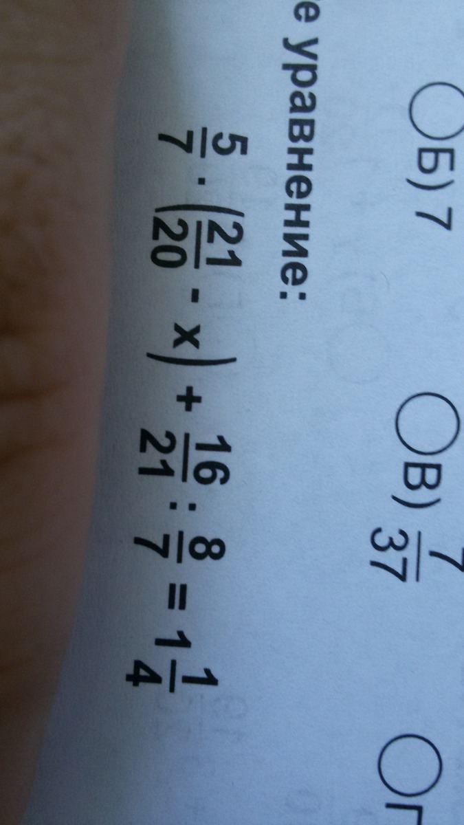 5/7*(21/20-х)+16/21:8/7=1 1/4