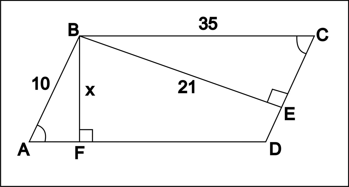 стороны пораллелограмма равны 10 и 35.Высота опущенная на первую сторону равна 21.Найдите высоту опущенную на вторую сторону
