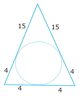 Суть задачи в том, что стороны Δ - это касательные к окружности. Надо рассматривать части касательных ( от вершины до точки касания).Куски касательных, проведённых из одной точки равны между собой. То есть касательные из одной вершины равны по 15, из второй 4 и 4, из третьей 4 и 4.