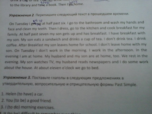 Задание 2, нужно поменять глаголы настоящего времени на прошедшее, помогите ,пожалуйста!!!!