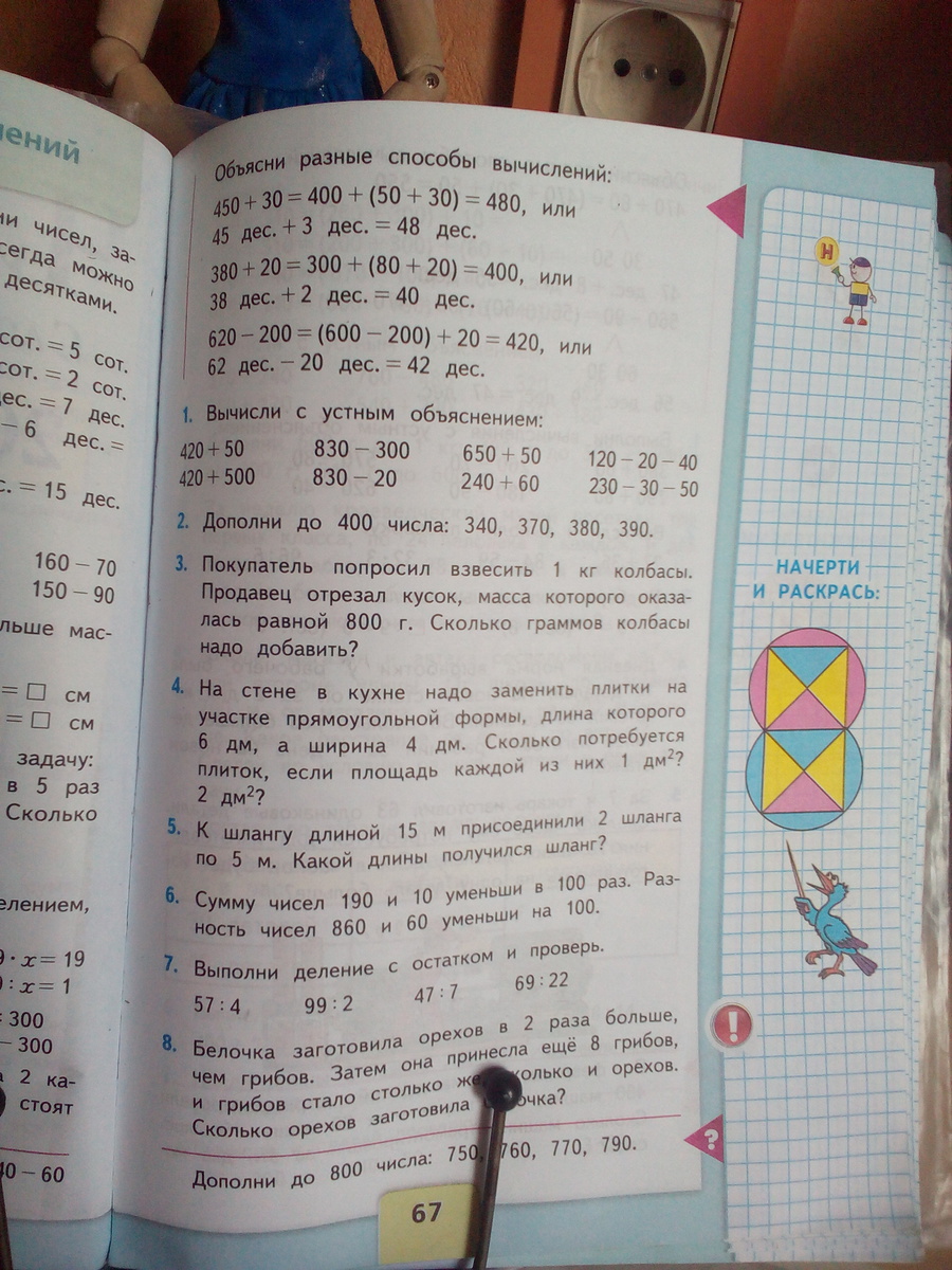 6*4=24(дм2)-площадь участка24/1=24(шт)-потребуется плитки с площадью 1 дм224/2=12(шт)-потребуется плитки с площадью 2 дм2
