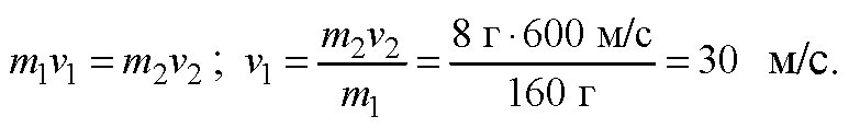 V₁=(m₂V₂)/m₁=8*600/160=30 м/с.