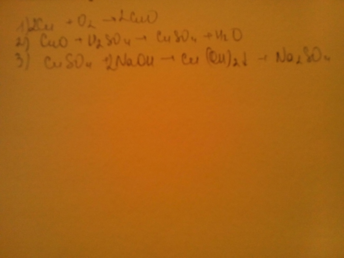 Записать уравнения реакций с помощью которых можно осуществить следуйщее превращения: Cu<-->CuO→CuSO4→Cu(OH)2