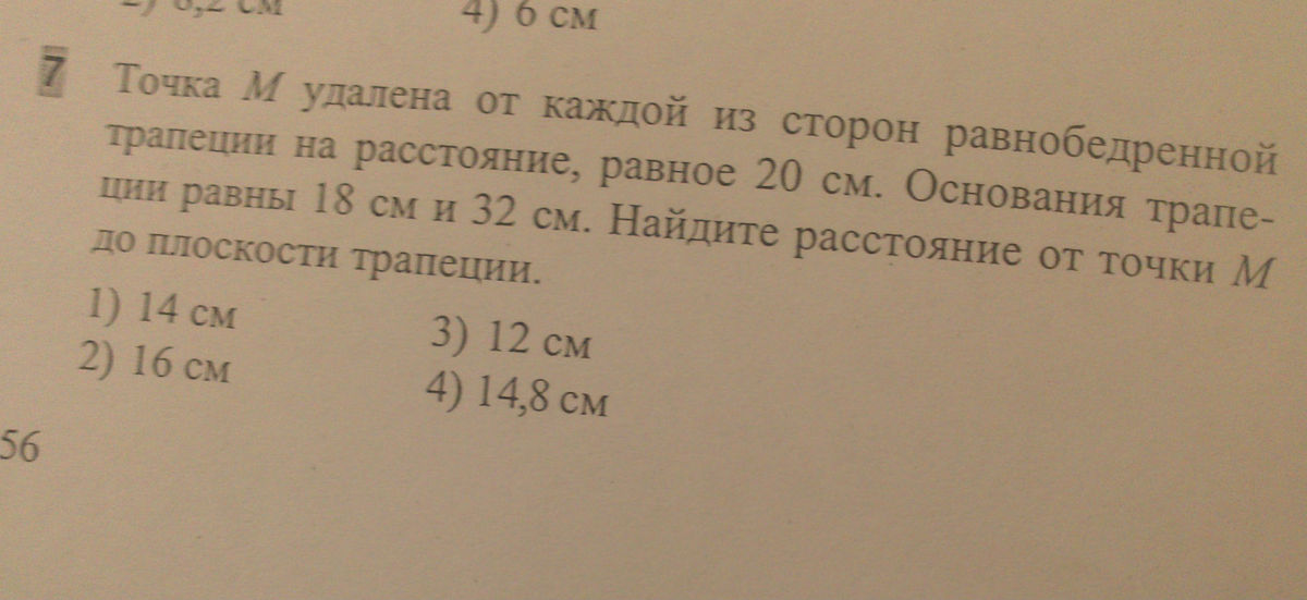 Расстояние от М до плоскости трапеции равно: