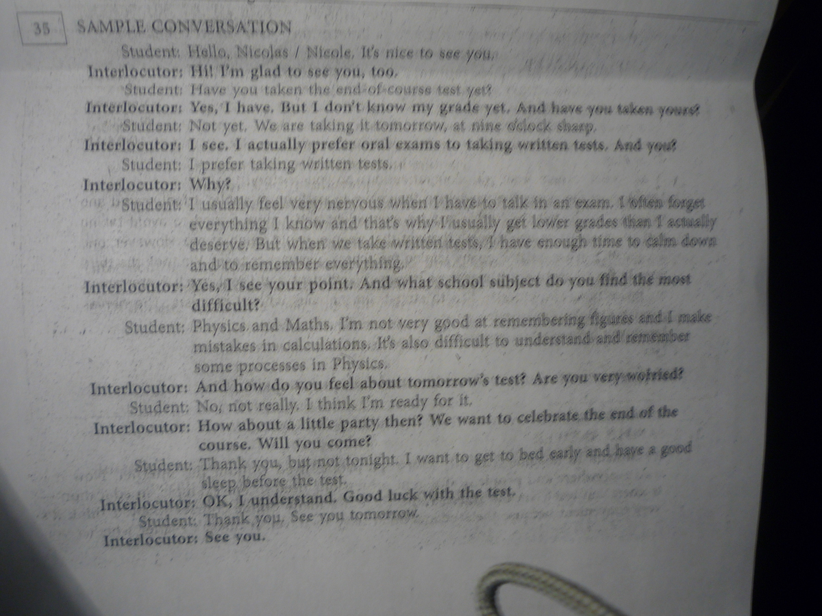 Nicole I’m writing mine on Tuesday and I’m afraid that we’ll have oral exams and I’m not so good at them. And do you prefer oral or written exams?