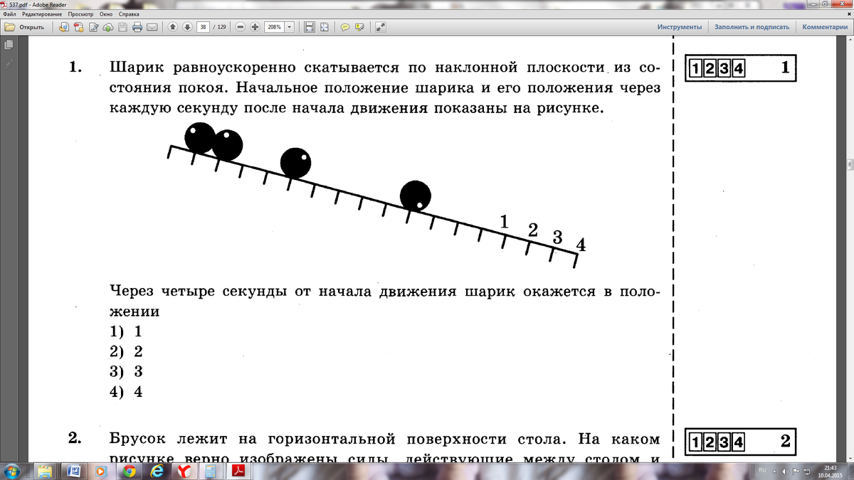 в 4 положении,т.к. с каждой секундой он разгонялся на 2 деления(сначала на 1,потом на 3,позже на 5,значит в последний раз на 7 делений),а это и есть 4 ответ ;)