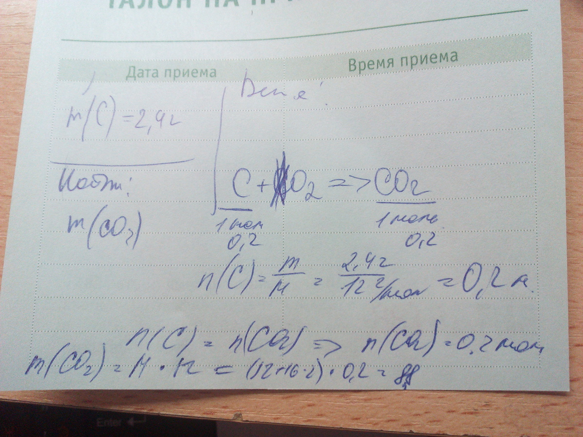 n(C)=n(CO2)=>n(CO2)=0.2моль