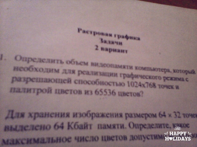 Решение:N=2i=65536 i=16 бит Количество точек изображения равно:1024 х 768=786432 16 бит х 786432=12582912 бита/8 бит/1024 байт=1536 кбайт/1024 байт=1,5 м байта