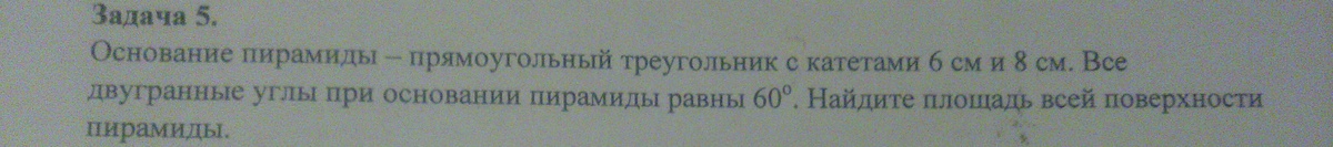 5. Если у пирамиды двугранные углы при основании равны, то