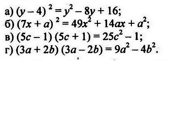 Это не примеры, а формулы, как раскрываются квадрат суммы или разности и разность квадратов.