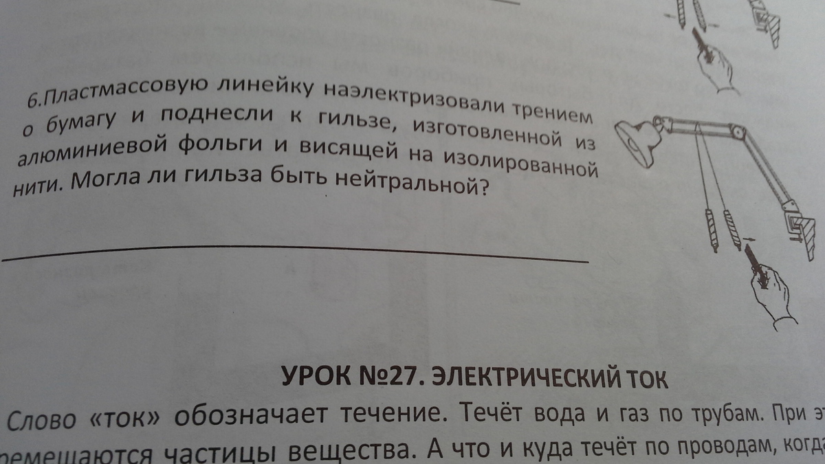Нет не могла, потому что нейтральный заряд не стал бы притягивать к заряженной линейке.
