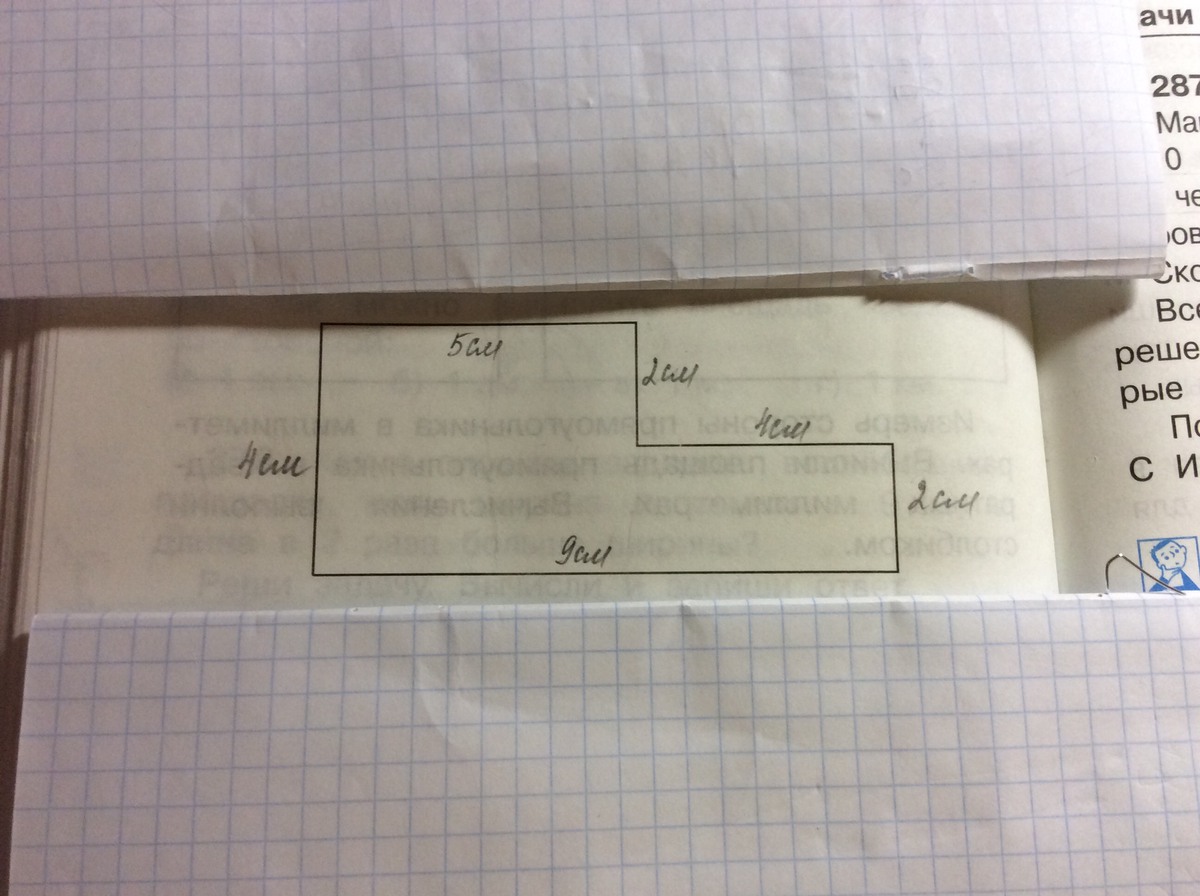 Делишь её на 2 прямоугольника со сторонами 4см и 5см(1-ый) и со сторонами 4см и 2см(2-ой)