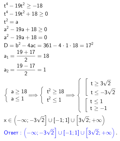 ответ: t ∈ (-∞;∞ -3√2] U [-1; 1] U [3√2 ; ∞) .