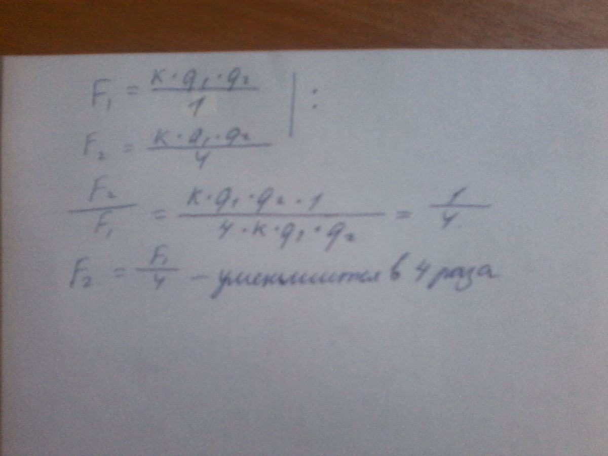 Два неподвижных точечных заряда находятся на расстоянии 1 м. Как изменится сила их взаимодействия, если увеличить расстояние между ними до 2 м?