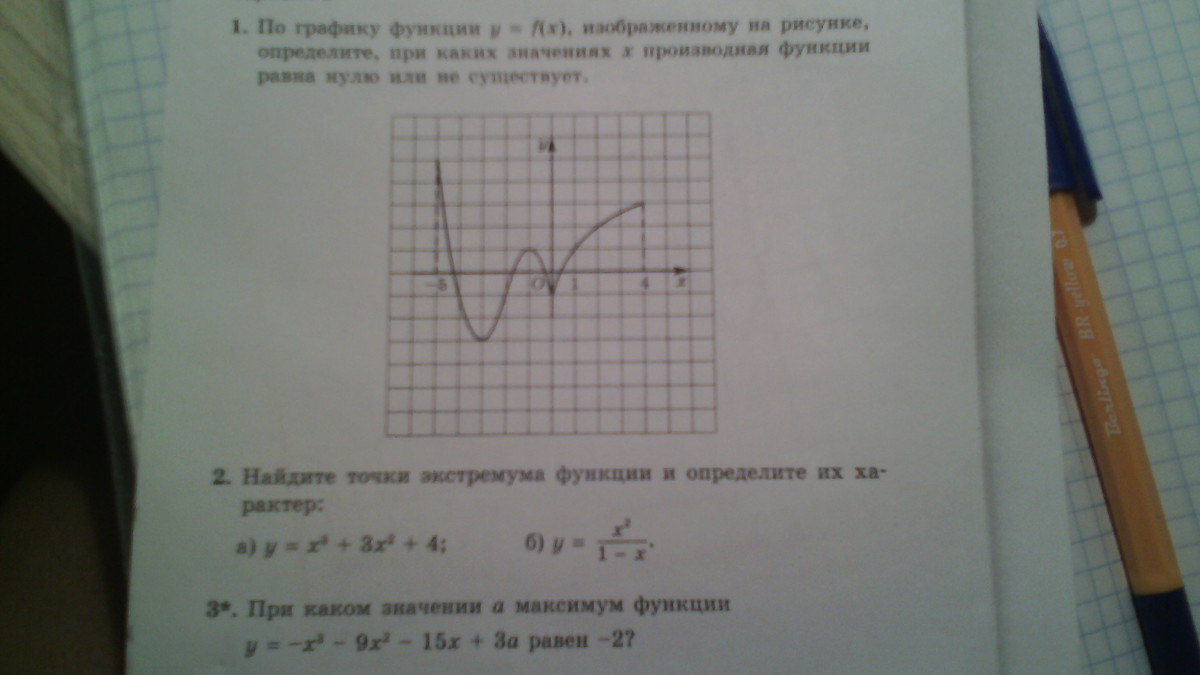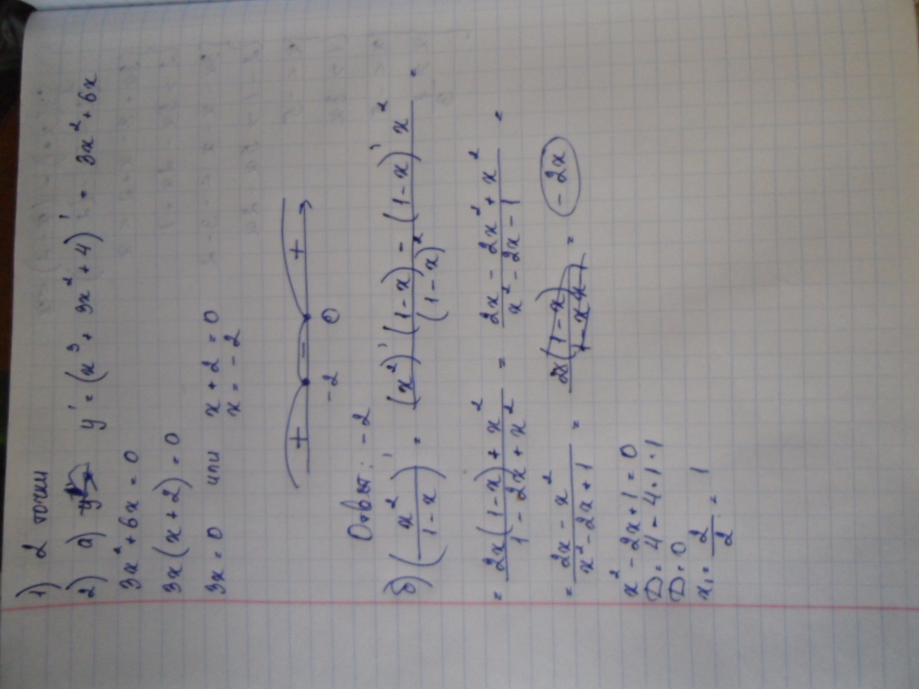Найдите точки экстремума функции и определите их характер: a) y=x^3+3x^2+4 б) y= x^2/1-x