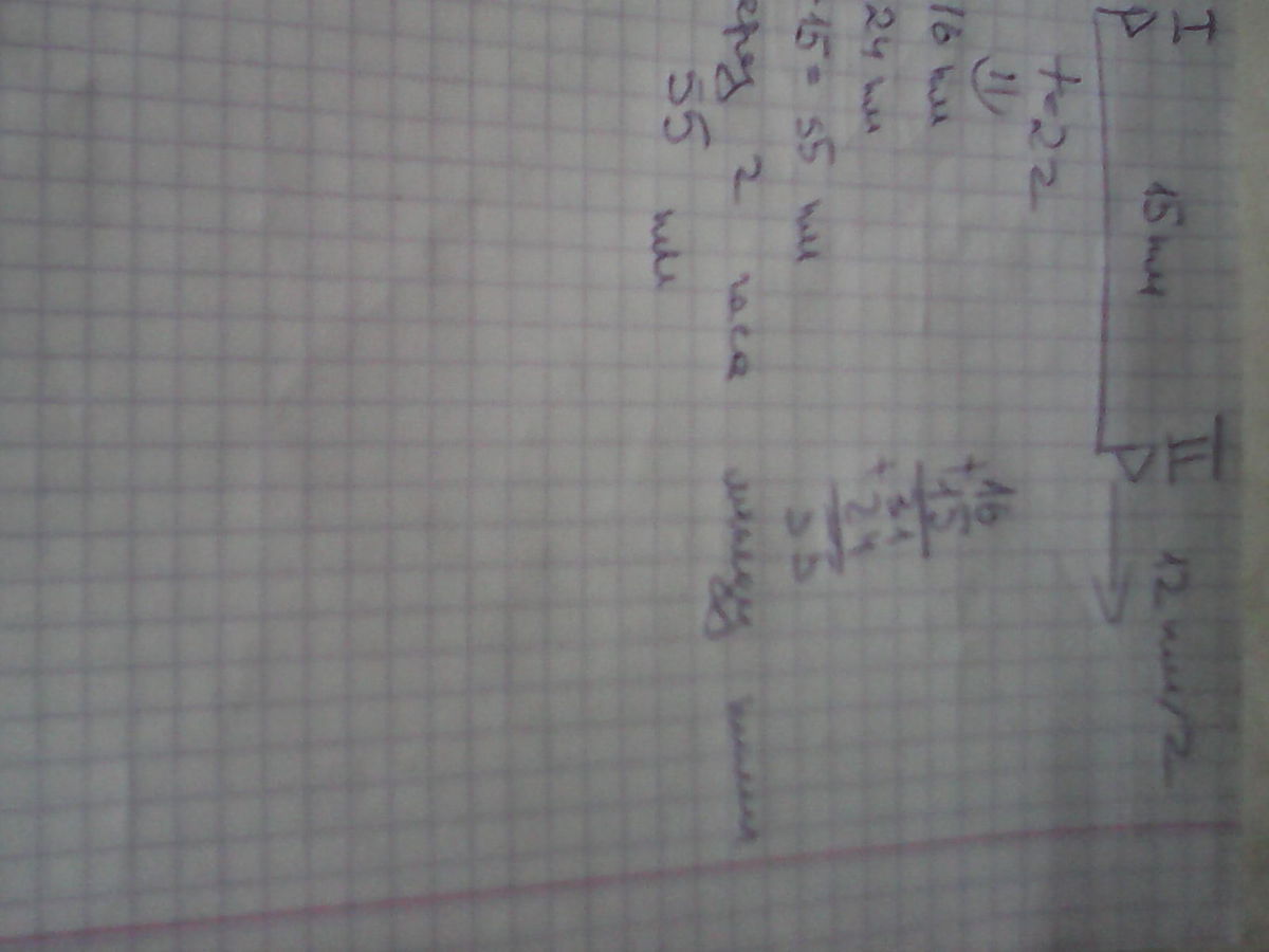из 2 посёлков, расстояние между которыми 15 км, вышли одновременно 2 лыжника и пошли в противоположном направлении. 1из них шёл со скоростью 12км/ч а другой со скоростью 8 км/ч какое расстояние было между ними через 2 часа?