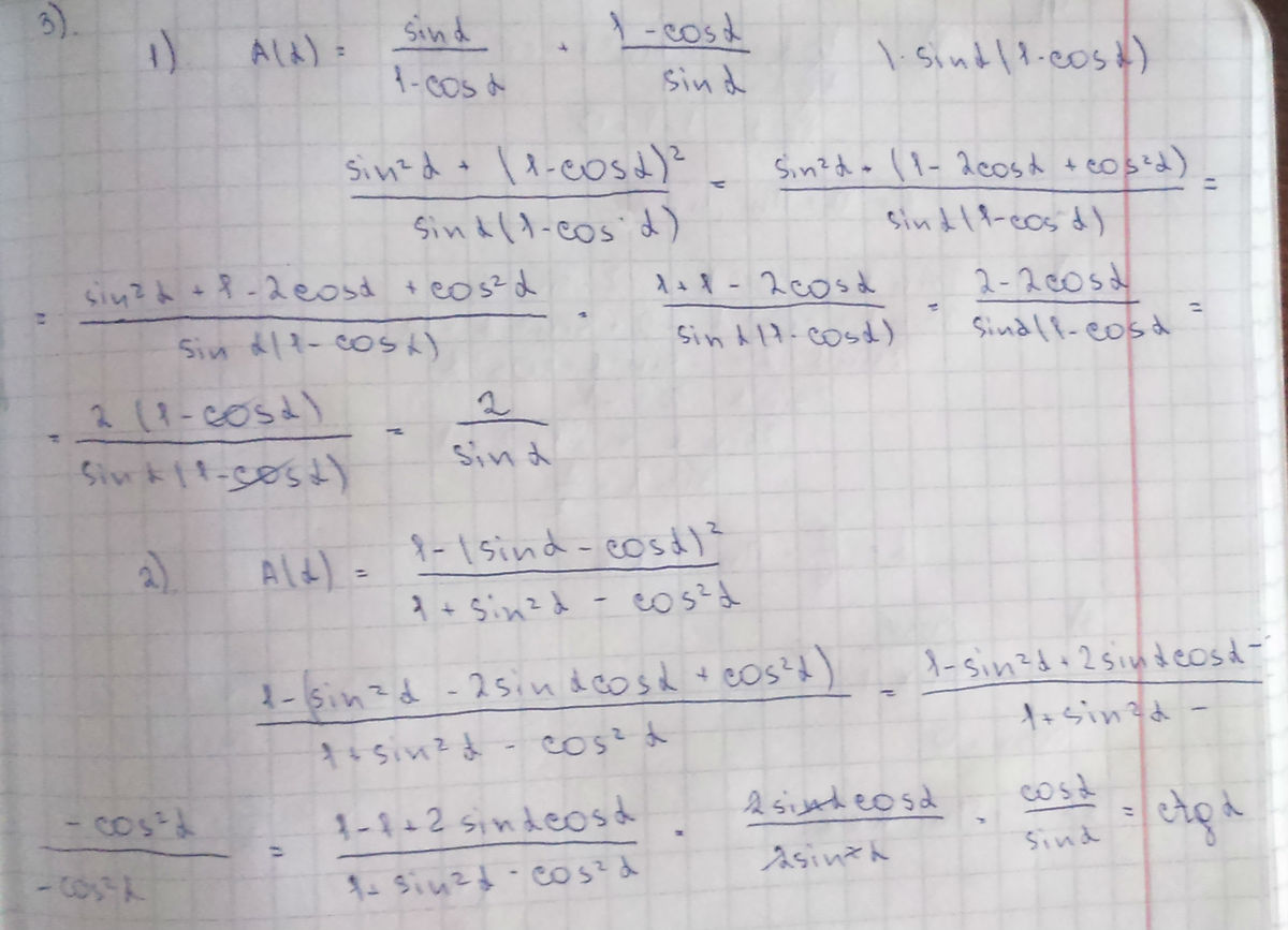 В задании 1 под цифрой 3 у меня ошибка - косинус равен 24/25, а синус -7/25.