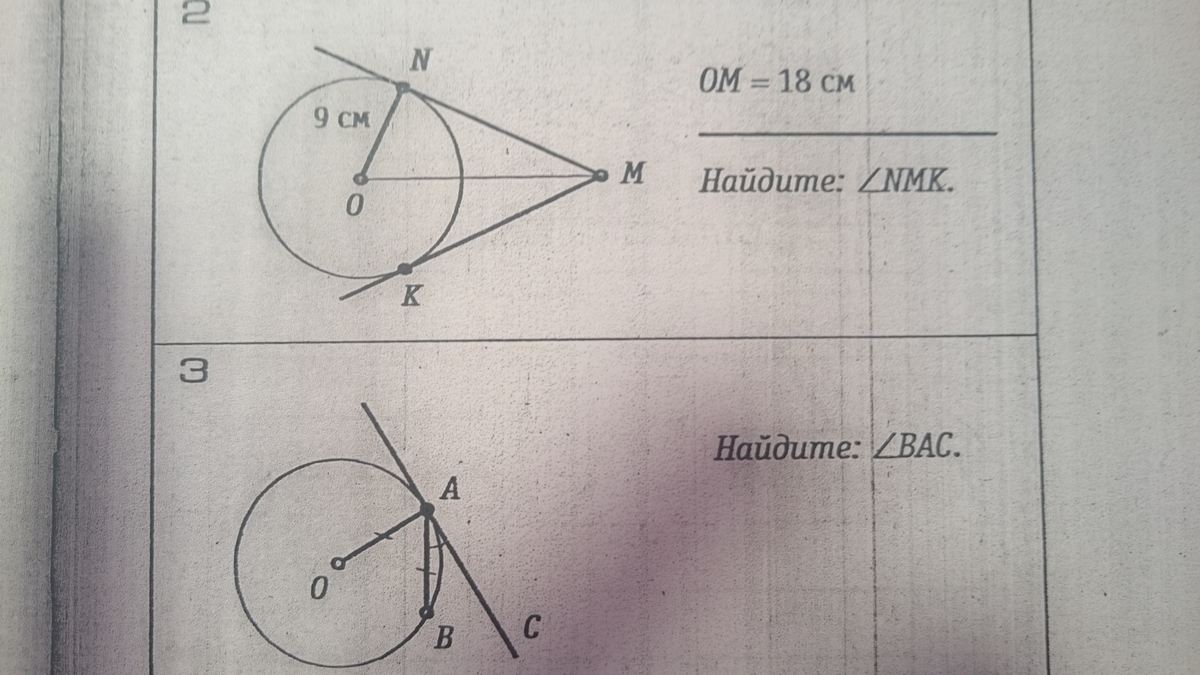 2) Найдем угол NMO=1/2 угла NMK (из чертежа). sin угла NMO=ON/OM=9/18=1/2, угол NMO=30градусов⇒угол NMK=60градусов.