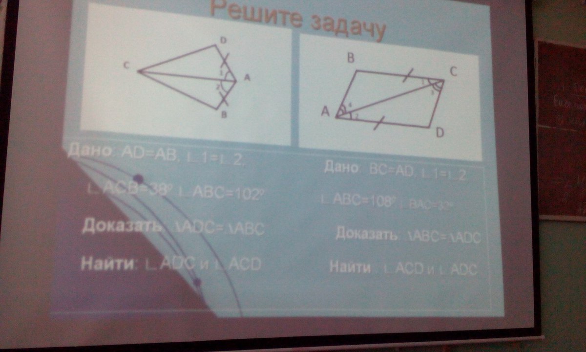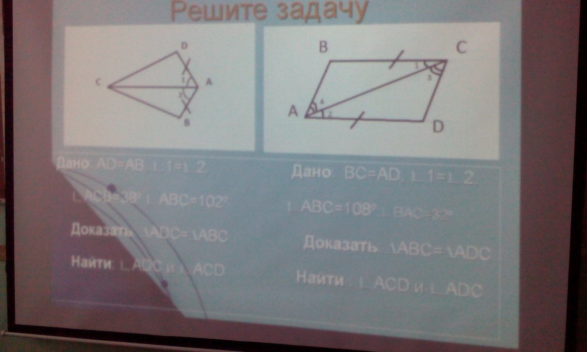 2) ΔABC=ΔADC по 1-ому признаку равенства Δ: