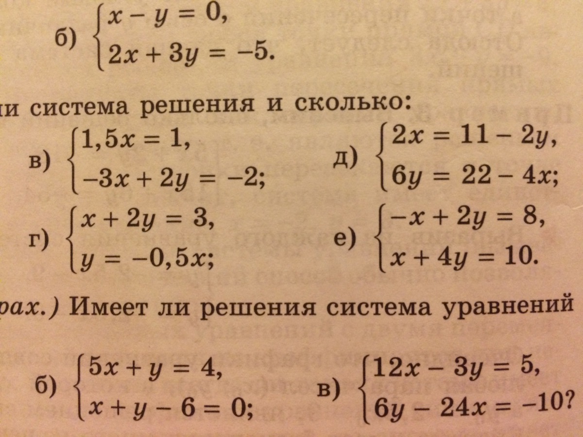 Выясните, имеет ли система решения и сколько: (под буквами в) и д))