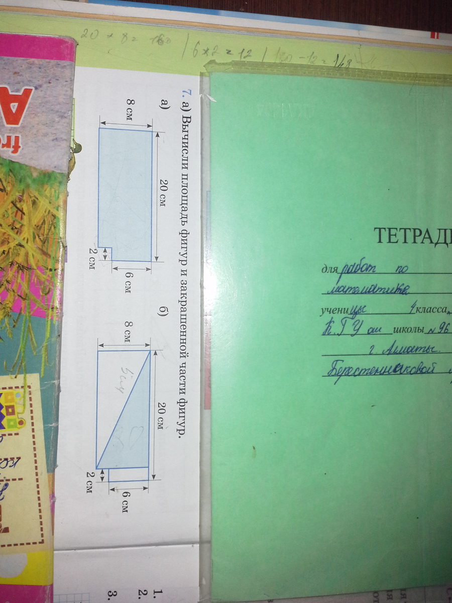 б) (8×(20-2)+(6×2)=156 (см²) - площадь фигуры