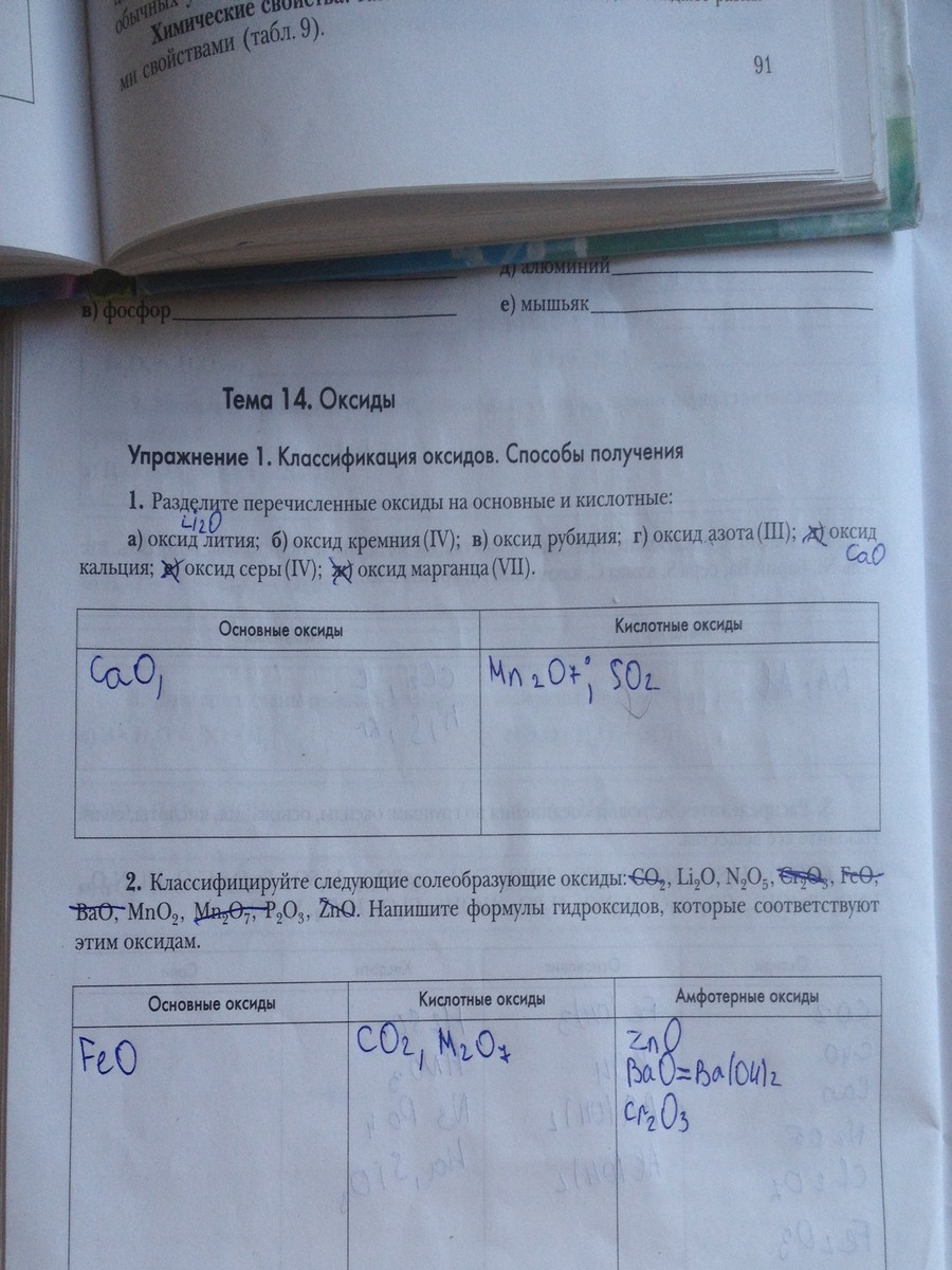 Основный оксиды: Оксид лития (Li2O), оксид рубидия (RbO), оксид кальция (CaO).