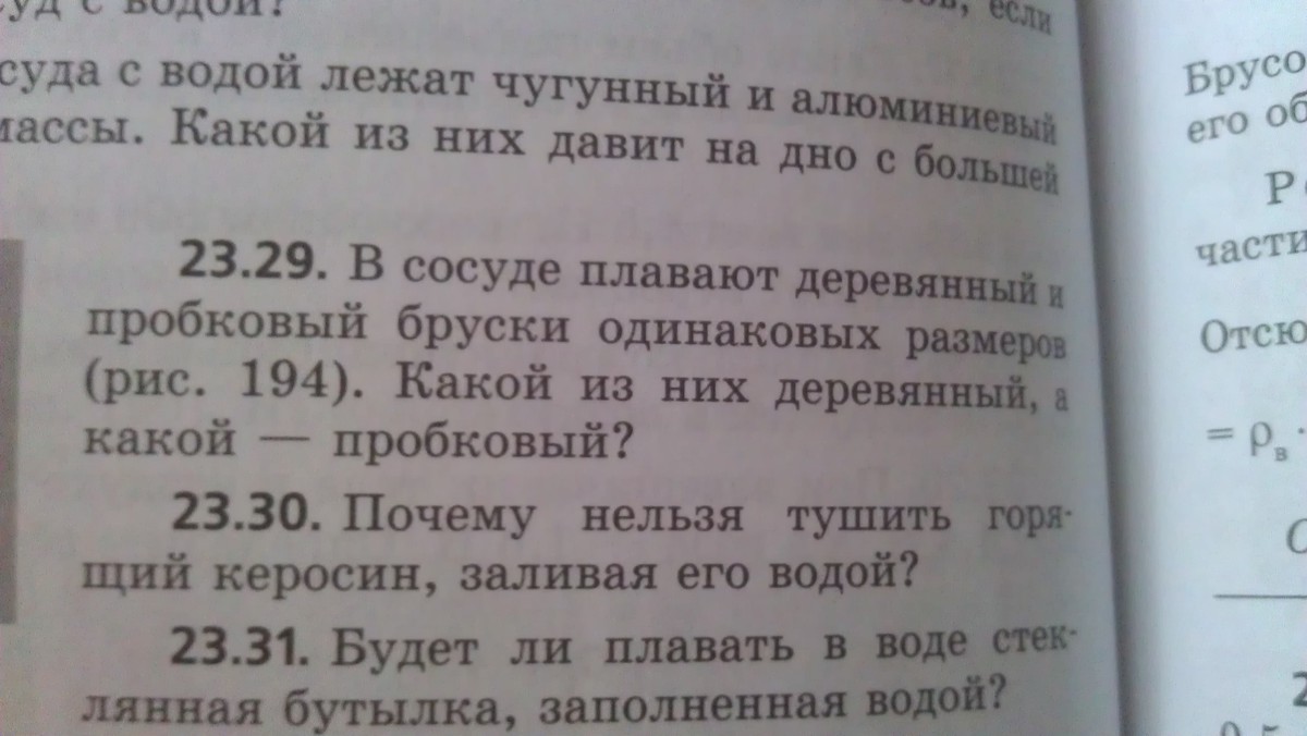 23.29. Тот брусок, который больше погрузился в воду будет деревянным.