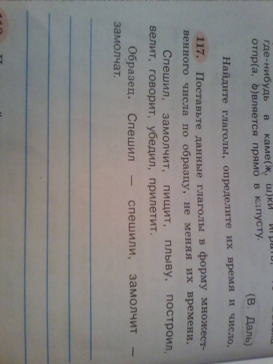 Спешил - спешили, пищит - запищат, плыву - плыли, построил - построят, велит - велели, говорит - заговорят, убедил - убеждали, перелетит - перелетят.