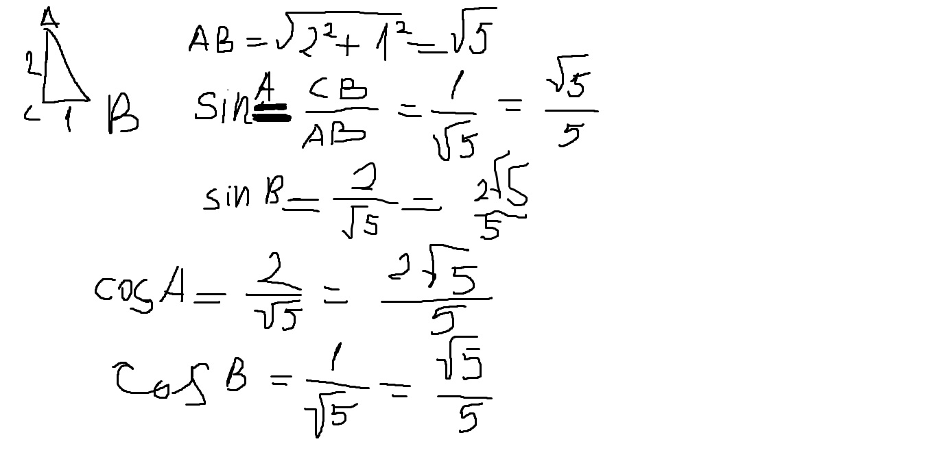 найдите синусы и косинусы острых углов A и B треугольника ABC с прямым углом C, если: bc=1, AC=2, AB=