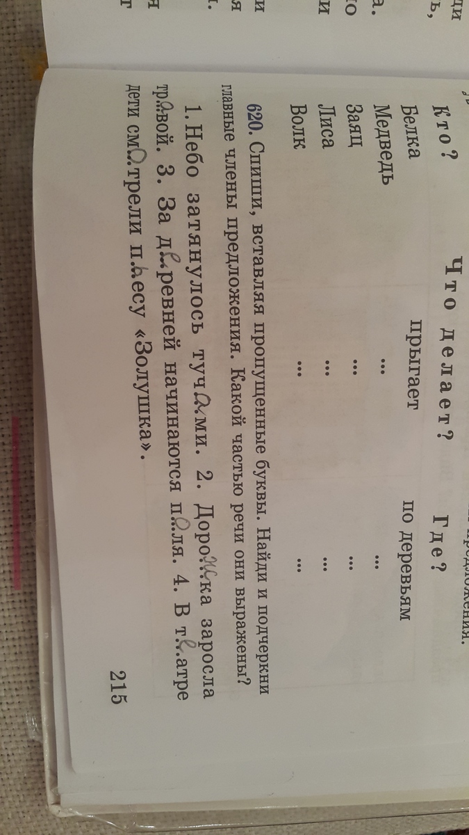 Найди и подчеркни главные члены предложения.Какой частью речи они выражены?Упражнение 620.