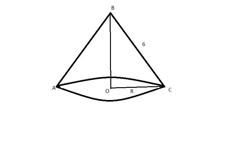 теперь по теореме пифагора найдем третью сторону треугольника: ВС^2=ВО^2+ОС^2; 36=9+ОС^2; ОС^2=27; ОС=3корня из 3. ответ: высота=3,радиус=3корня из 3