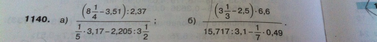 \frac{(8 \frac{1}{4}-3.51):2.37}{ \frac{1}{5}*3.17-2.205:3 \frac{1}{2} } =\frac{( \frac{33-3.51*4}{4}):2.37}{ \frac{1}{5}*3.17-2.205* \frac{2}{7} }= \\\\ =\frac{( \frac{33-14.04}{4}):2.37}{ \frac{1}{5}*3.17-2.205* \frac{2}{7} }==\frac{( \frac{33-14.04}{4}):2.37}{ \frac{1}{5}*3.17-2.205* \frac{2}{7} }=\\\\\ =\frac{( \frac{18.96}{4}):2.37}{ 0.634-0.63 }=\frac{4.74:2.37}{ 0.004 }=\frac{2}{ 0.004 }=500