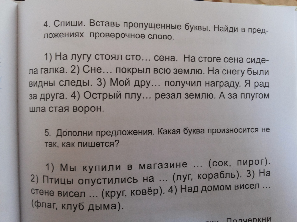 стог ,снег ,друг ,плуг ,проверочные слова: на стоге ,на снегу ,за друга ,за плугом,