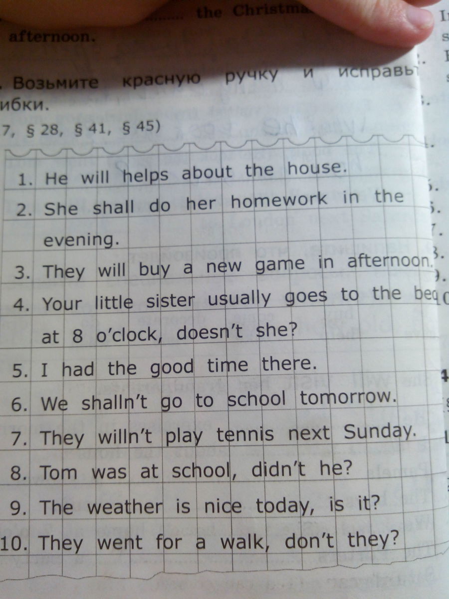 4. Your little sister usualy goes to bed at 8 o'clock.