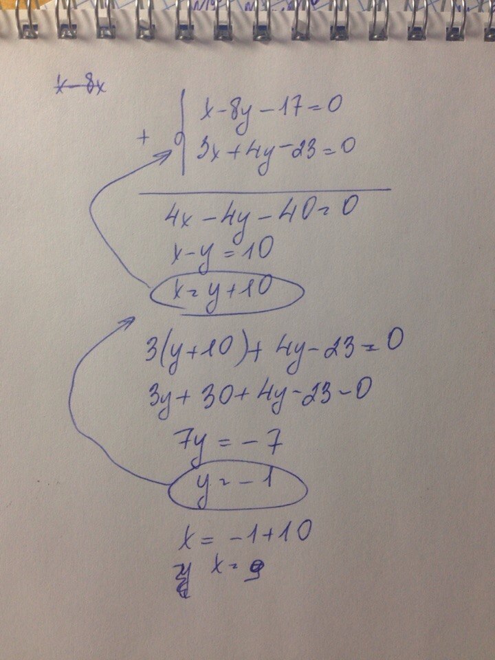 3x+4y-23=0 3x+4y-23=0 -28y-28=0 -28y=28 y=-1