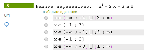 x принадлежит от -бесконечности до -1 и от 3 до +бесконечности