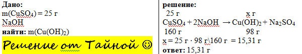 какова масса осадка образовавшегося при взаимодействии избытка раствора гидроксида натрия с раствором содержащим 25г сульфата меди (1.1)