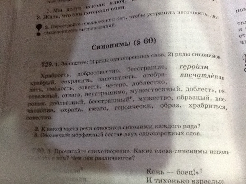К какой части относятся синонимы храбрость,добросовестно,бесстрашие.упражнение 729