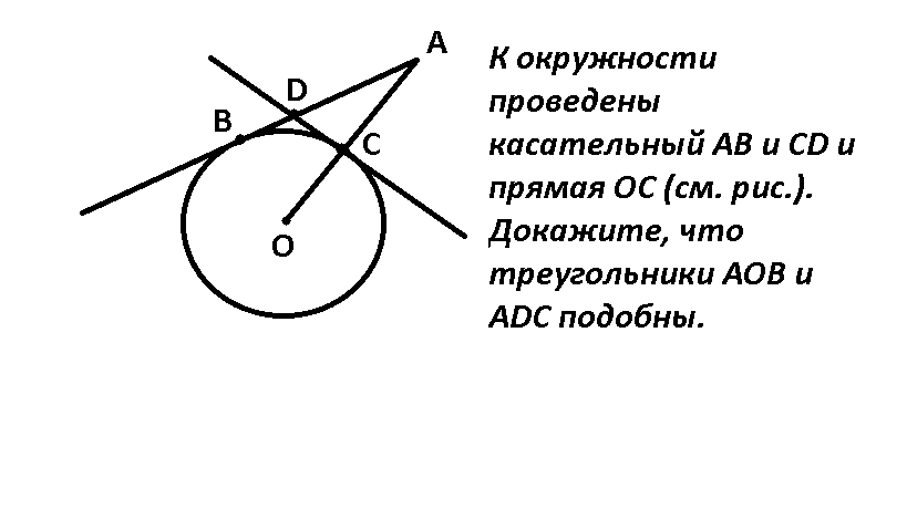 К окружности проведены касательный AB и CD и прямая OC (см. рис.). Докажите, что треугольники AOB и ADC подобны.