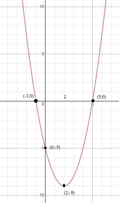 (-1;0) и (5;0) - точки пересечения параболы с осью ох.