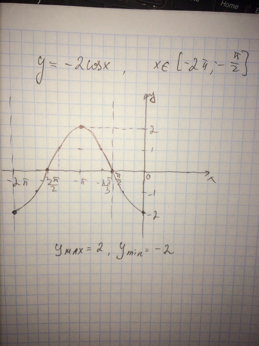 y=-2cosx, [-2п; -п/2]