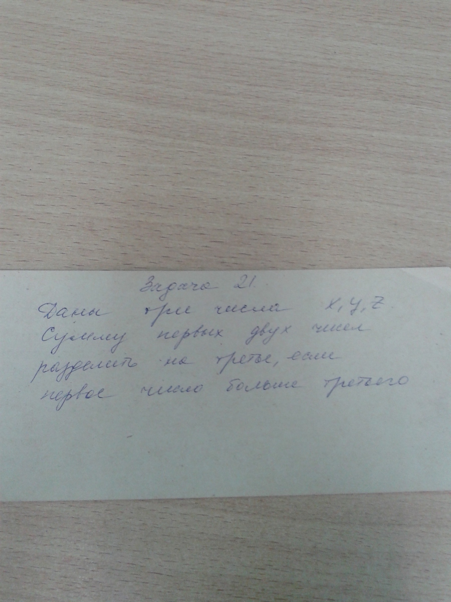 Сумму первых двух чисел разделить на третье, если первое число больше.