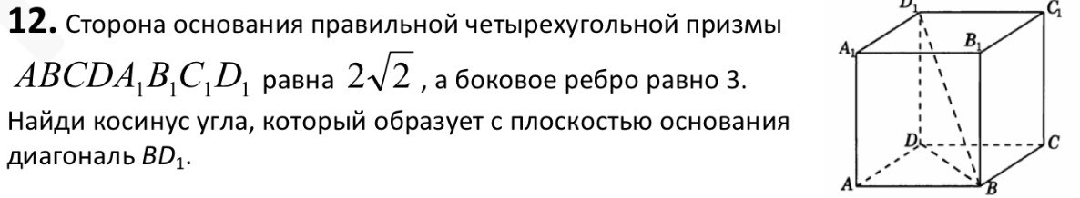 по теореме Пифагора D1B^2=DD1^2+DB^2