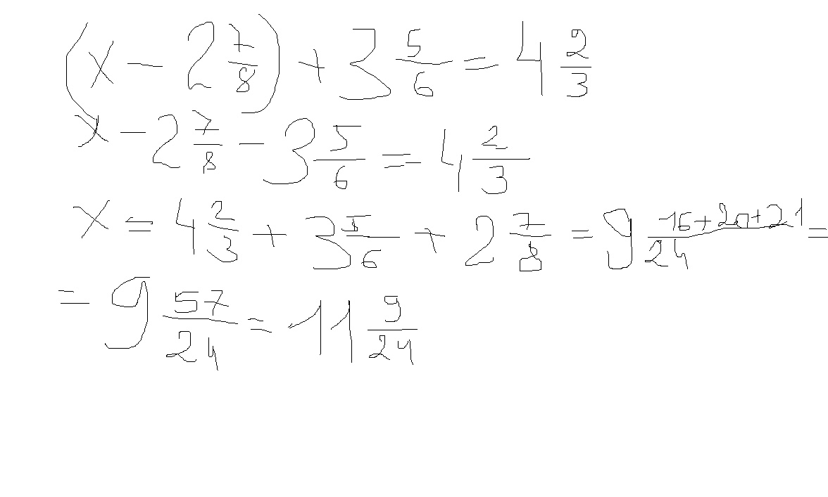 ( X- 2 целых семь восьмых) + 3 целых пять шестых = 4 целых две третих Помогите пожалуйста уже час думаю не получается