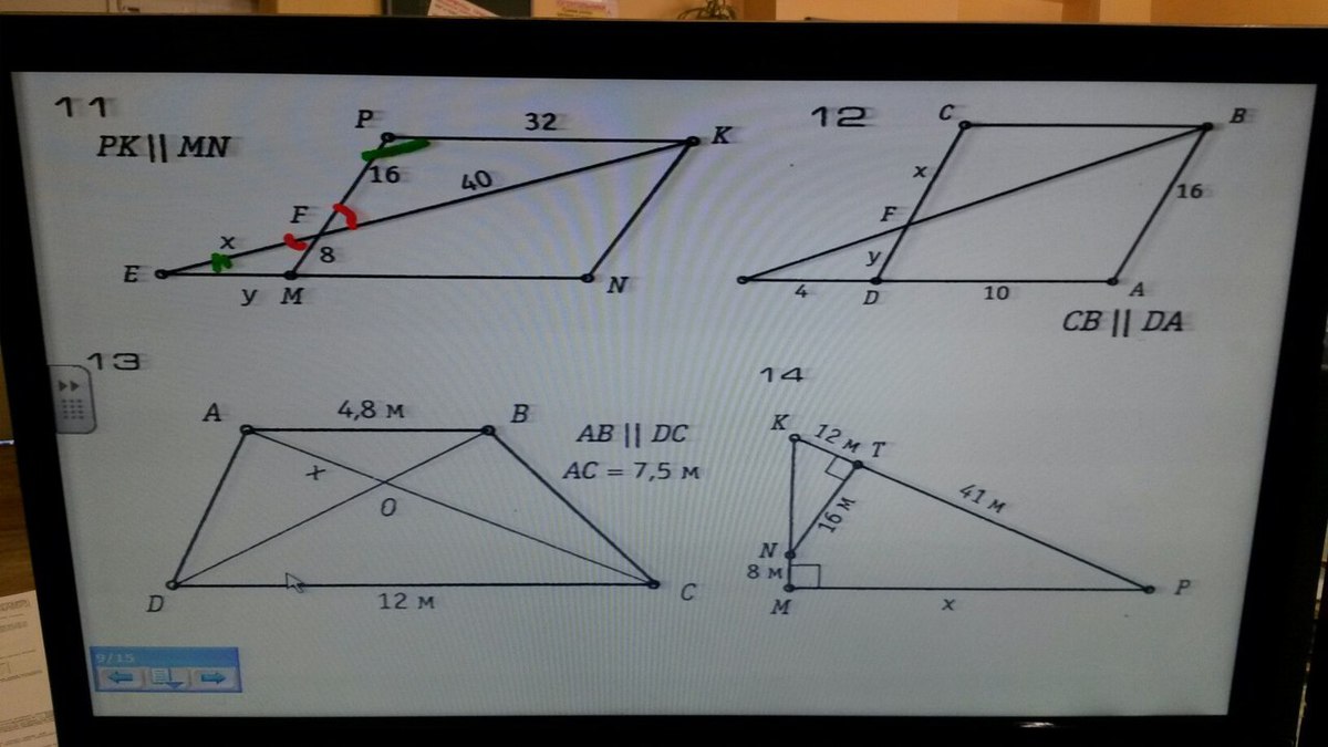 12) Обозначим точку пересечения прямых АД и ВF- точка М и рассмотрим ΔДМF и ΔАМВ . Эти треугольники подобны. Поэтому : АМ/МД=АВ/у
