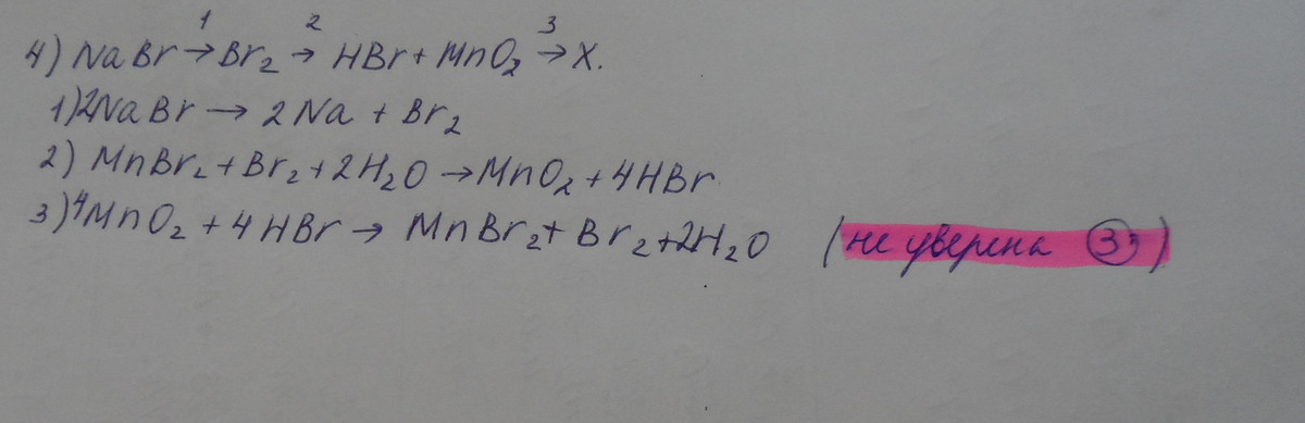 4. NaBr -> Br2 -> HBr + MnO2 ->X